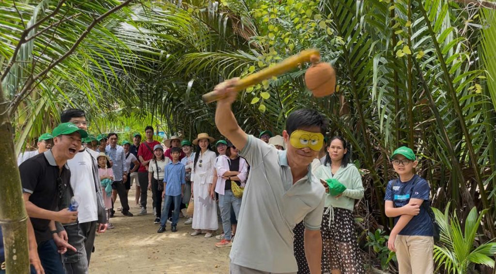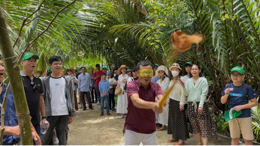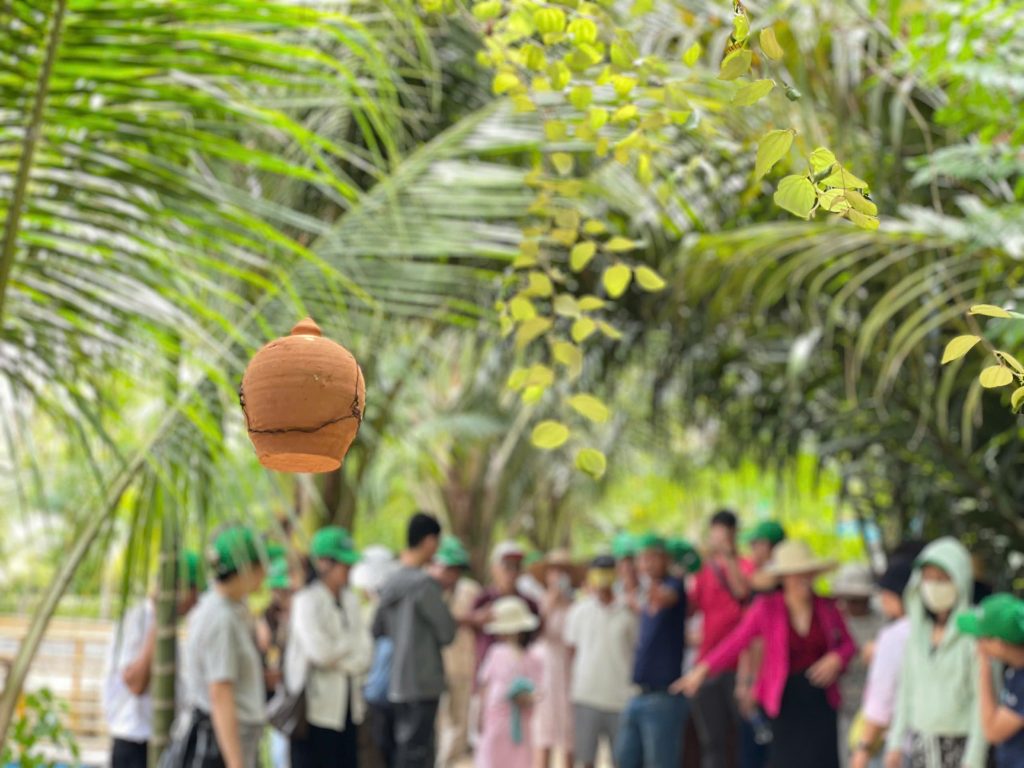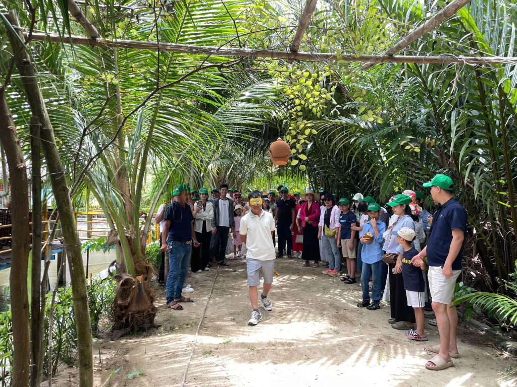 Thành viên tham gia thuyền thúng, tận hưởng không gian xanh mát giữa rừng dừa